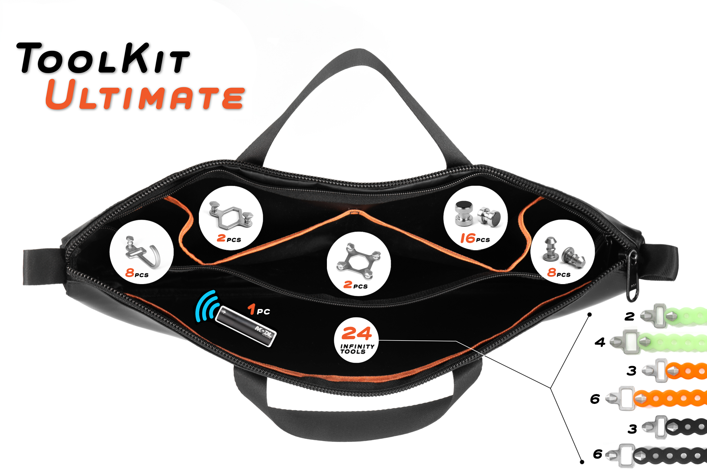 The Infinity Tool is a new type of multi-tool. Simple but powerful, you’ll be surprised by what this flexible gear tie can do!
